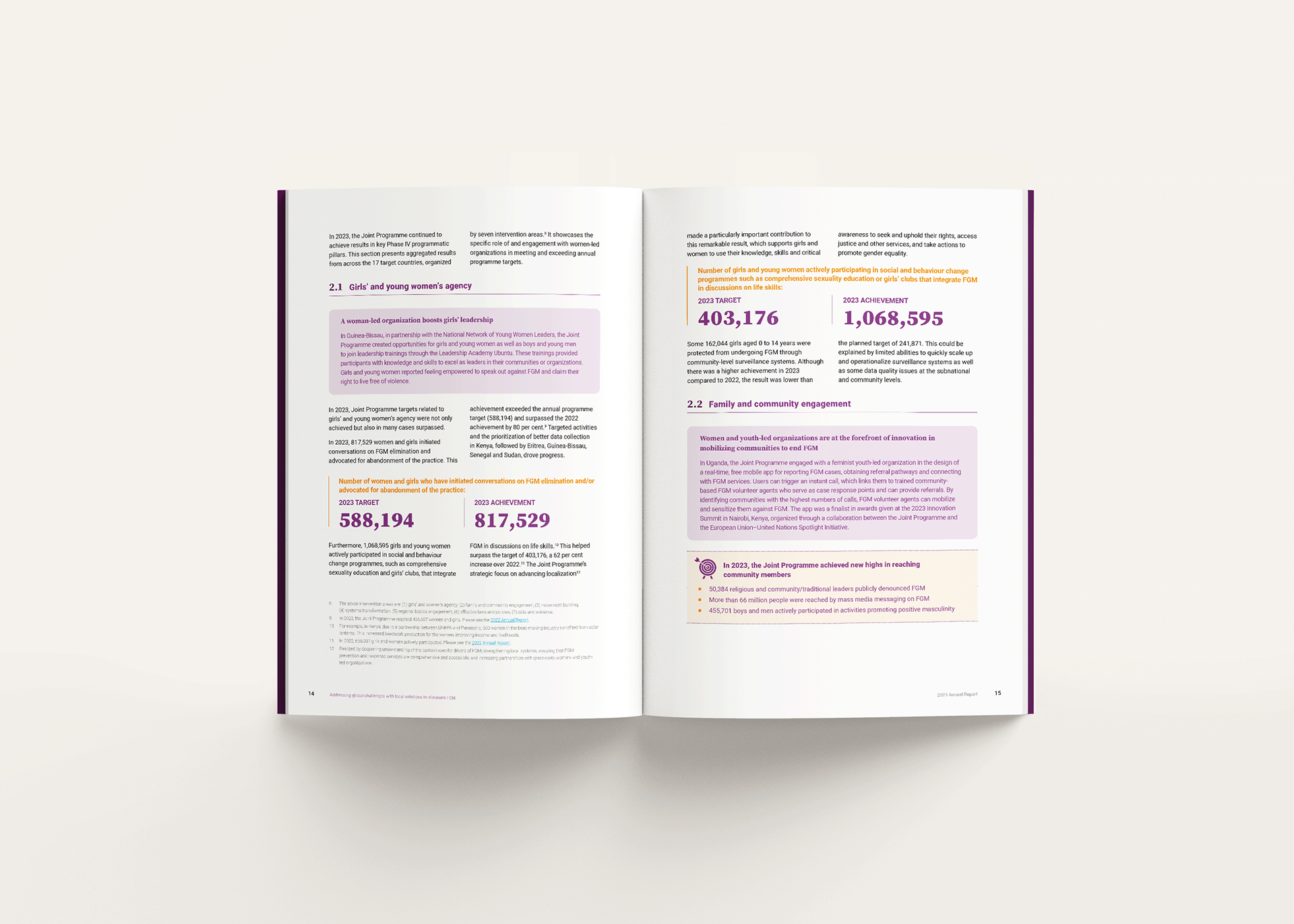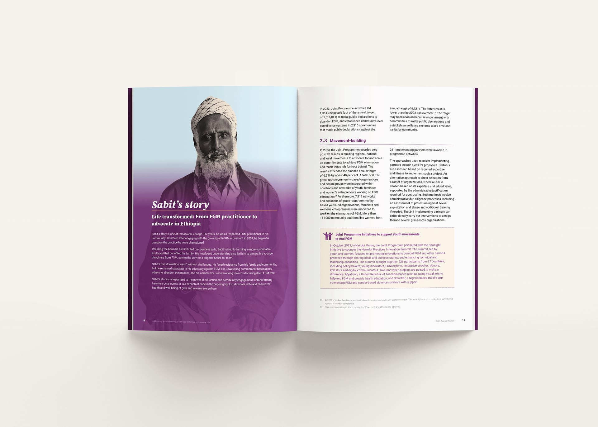 Rec Design led the editorial design and visual storytelling for the UNFPA–UNICEF Joint Programme on the Elimination of Female Genital Mutilation Annual Report 2023, translating a complex, multi-country initiative into a cohesive and accessible publication.